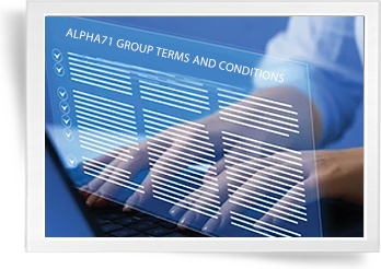 Nothing contained within this web site, trademarks, logos, seals, and service marks, should be construed as granting, by implication, or otherwise, any license or right to use any of them  without the written permission of alpha71 group™ or such third party that may own the trademarks, logos, seals, and service marks displayed